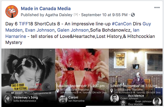 My journey got into overdrive with my next task, which was a deep dive into the line-up of Canadian Filmmakers lucky enough to have their films screened at TIFF’18. The task was to read all the synopsis of the films, create a Made In Canada Facebook posting that include the director’s name and picture for each film, then select the films I will like to see, The Grizzles was one of my selections. I have never been more impressed and the idea that only a very small number of Canadians sees Canadian films is depressing.